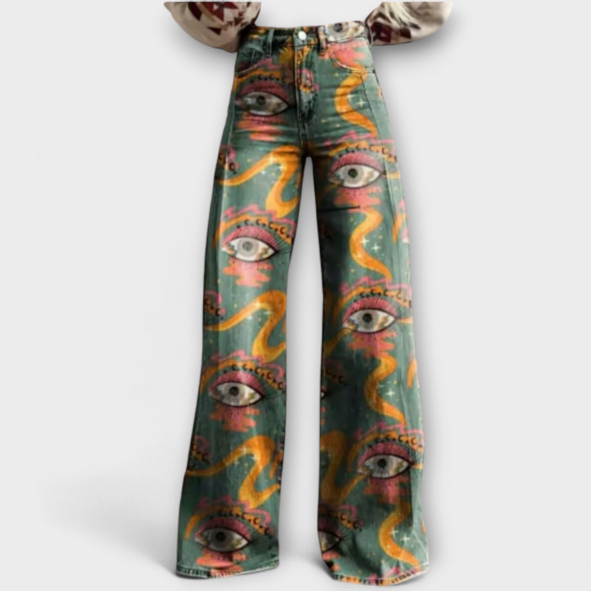 Bodil | Boho Bukser forener bohemisk elegance med vintage raffinement i en håndværkspræget konstruktion. Hver søm vidner om omhyggeligt håndværk og materialekvalitet, mærkbar ved første berøring. Den tidløse silhuet og de unikke boho-prints i jordfarver, sennepsgul, dyb blå og terracotta vidner om en designarv, der tilfører garderoben et diskret, prestigefyldt præg. Stoffets lette væv bevarer farverne og giver bukserne lang levetid, mens detaljer bliver tydeligere over tid. Denne kombination af komfort og kvalitet gør Bodil til en tidløs investering med konstant appel hos samlere og kvalitetsbevidste garderobeforbrugere.