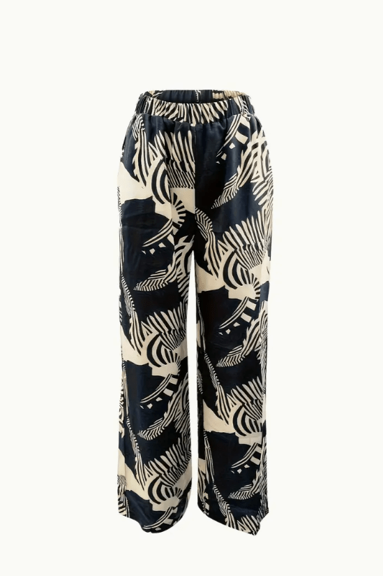 • Silhuet og pasform – toppens lette drapering komplimenterer buksernes grafiske mønster og skaber en naturlig silhuet.
