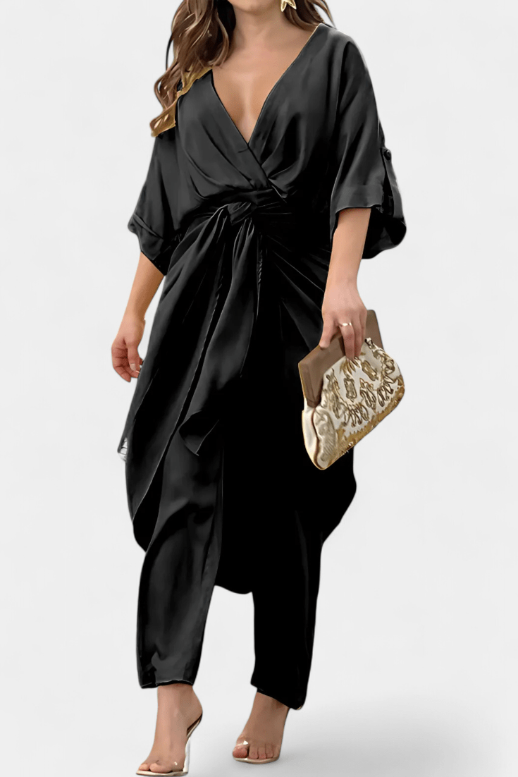 Frida | Sommer sæt udstråler tidløs elegance og omtanke for håndværk i særklasse. Det knyttede topstykke med V-udskæring og justerbart bindebånd fremhæver taljen naturligt, mens løse ærmer og flydende materiale bidrager til lethed og sommerlig stemning. De lige bukser balancerer silhuetten og skaber rolig bevægelse i solen. Sættet udtrykker kvalitetsbevidsthed uden anstrengelse og passer til sommerens mange øjeblikke. Begrænset antal og nøje udvalgte materialer giver Frida-sættet en tydelig følelse af eksklusivitet, tidløs prestige og appel til dem, der sætter håndværk i højsædet.