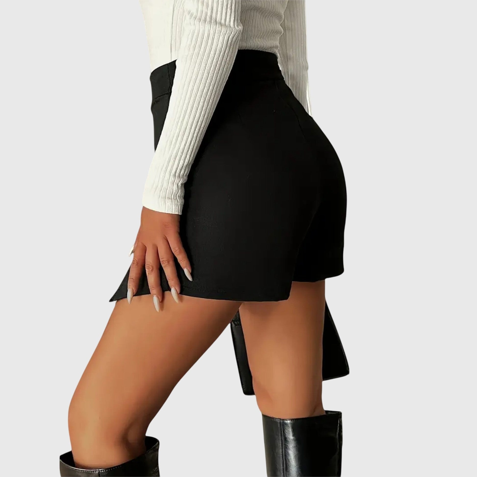• Høj talje fremhæver taljemålet og skaber en slank silhuet.