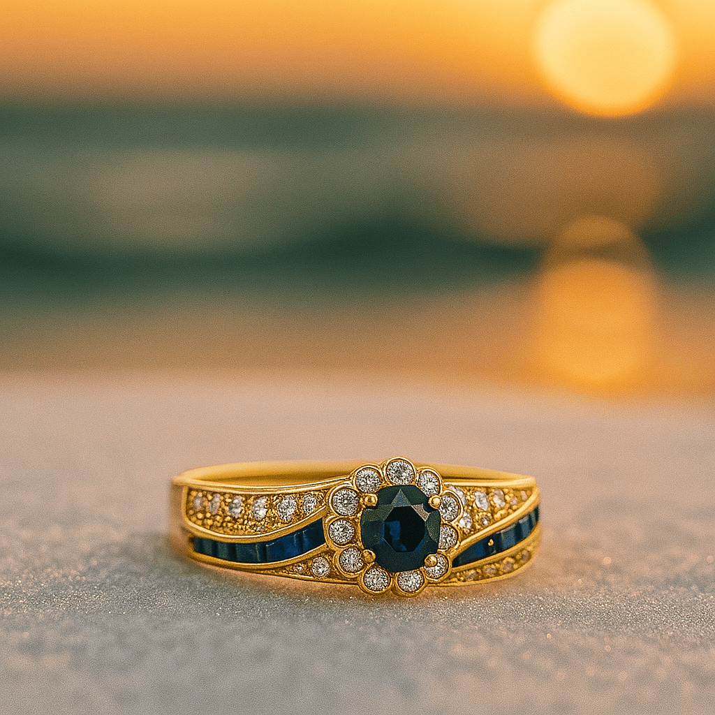 • Centersten: Midnattsblå zirkonia, der reflekterer havets dybder og tilfører dybde.