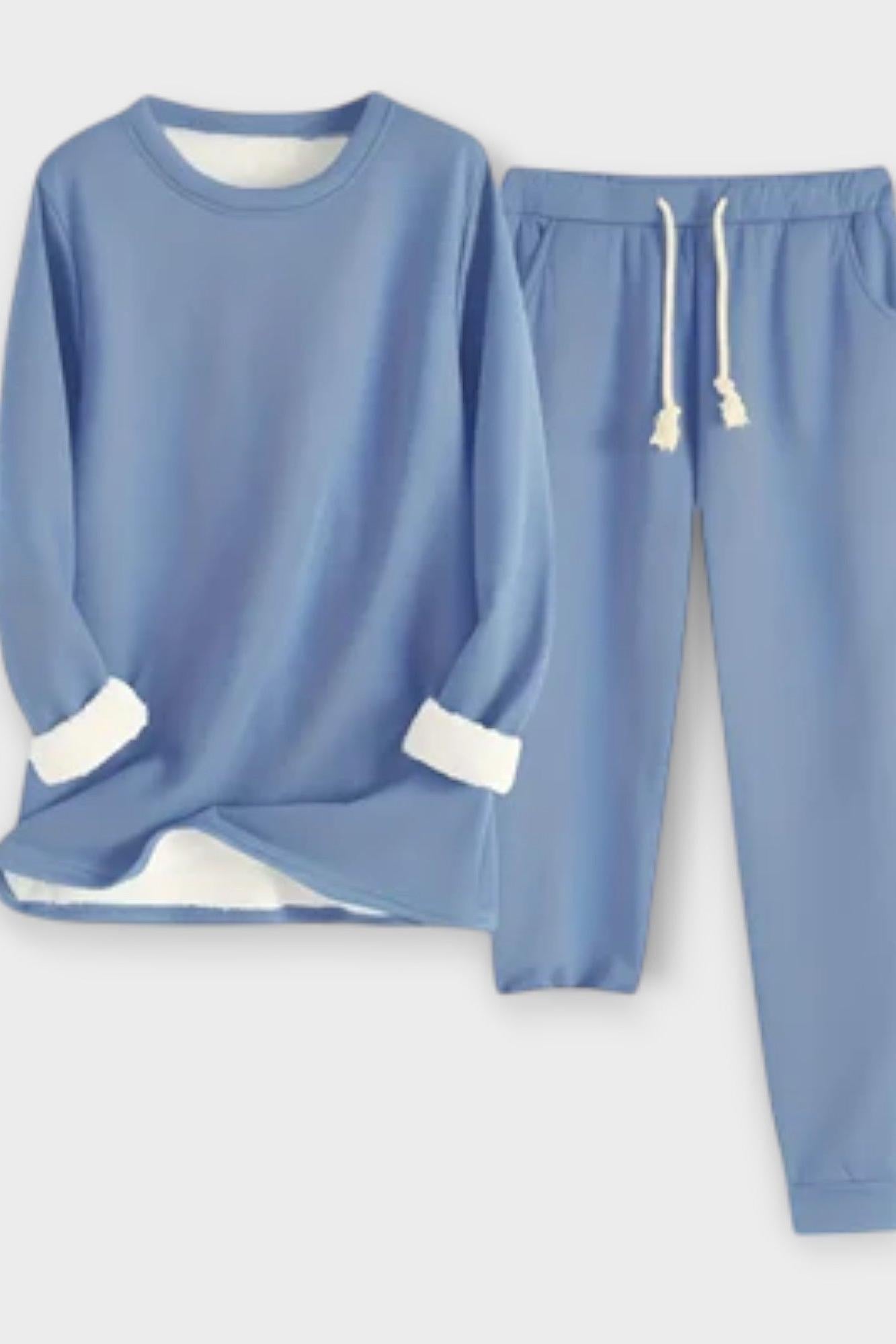 Mathilde | Langærmet sæt forener tidløs elegance med maksimal komfort. Sættet er omhyggeligt fremstillet i premium fleece, hvis bløde tekstur føles eksklusiv mod huden og giver fremragende åndbarhed uden at overophede. Hver søm og detalje vidner om håndværkets omtanke og materialernes kvalitet, hvilket giver en fremtoning, der passer lige så godt til afslappet hjemmeklima som til byens milde hverdagstile. Den enkle, klassiske silhuet sikrer en tidløs appel og lang sæsonværdi, mens form- og farvebestandigheden bevarer pasform og nuance gennem mange vaske. Desuden lover sættet nem pleje og vedvarende blødhed, så komforten følger dig år efter år. Med begrænset tilgængelighed tilføjes en dimension af prestige, der appellerer til den kvalitetsbevidste køber og giver Mathilde en naturlig samlerappel uden at gå på kompromis med funktionalitet.