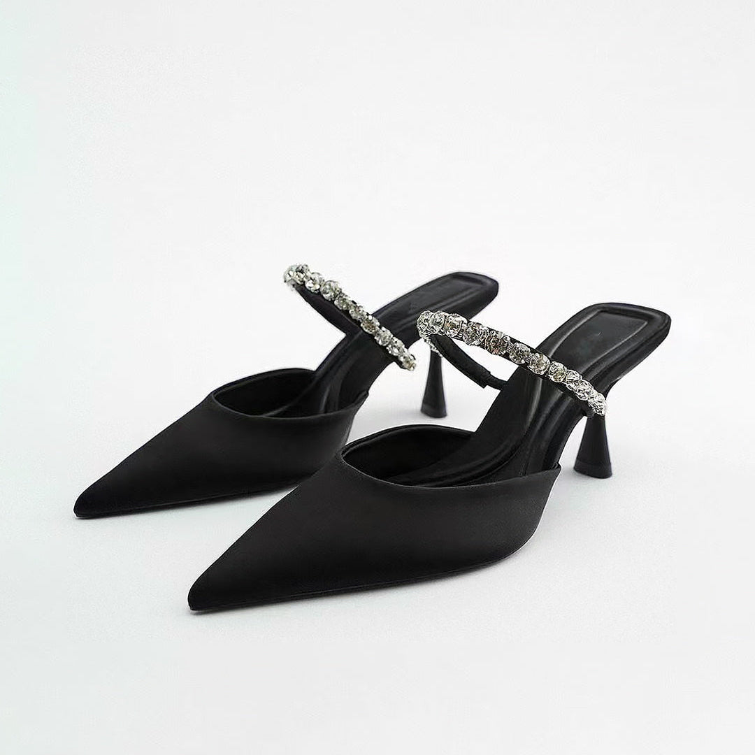 • Materialer og finish: Mette | Strass højhæle fremviser en sametagtig overflade og en skarp tå. Den høje kvalitet kommer til udtryk gennem kunstlæder og diskrete detaljer, der bevarer skønheden gennem årene.