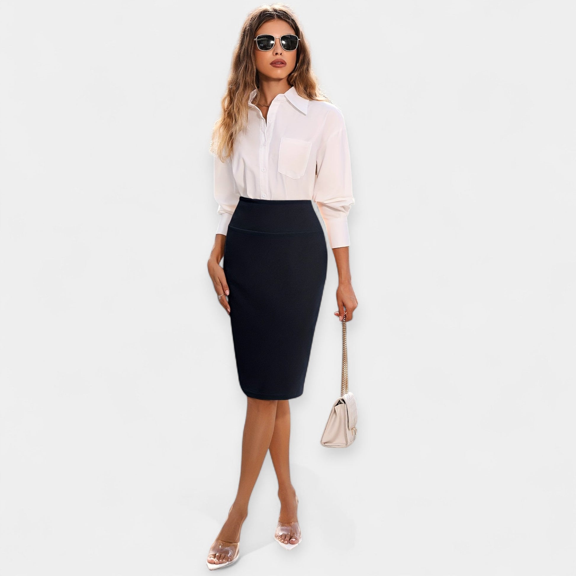 • Midi-længde: Midi-længden giver et klassisk, alsidigt look, der nemt kan opgraderes eller nedtones med valgte styling.