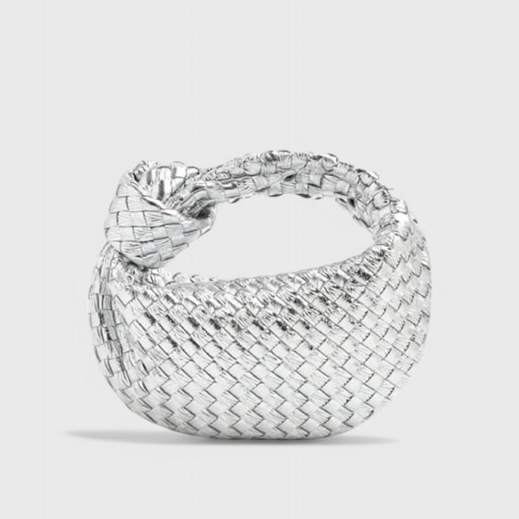 • Materiale og finish: italienskproduceret blødt vegansk læder med vævet mønster samt sølvfarvede rustfrit stålhardware.